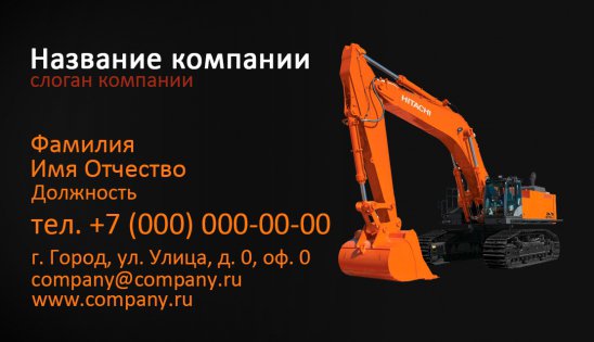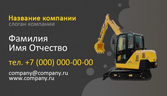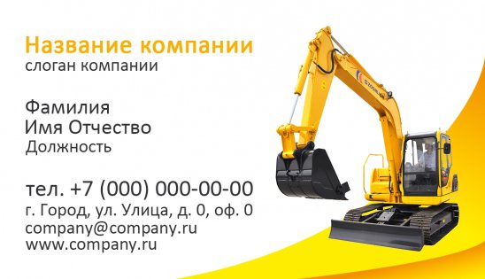 Перед вами лучшие визитки экскаватора, собранные в единую базу шаблонов на сайте типографии «Артикул». Пусть вас не смущает слово «шаблон», ведь индивидуальность понравившемуся варианту придается буквально на несколько минут. Для этого вам нужно:
