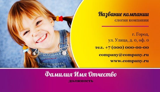 Для это вам необходимо лишь выбрать из качественно подобранной коллекции шаблонов визиток для няни оригинальный макет, заполнить его всей информацией о вас или вашей компании, оформить заказ в режиме онлайн. Уже на следующий день компания «Артикул» доставит вам высококачественную полиграфическую продукцию в указанное время!
